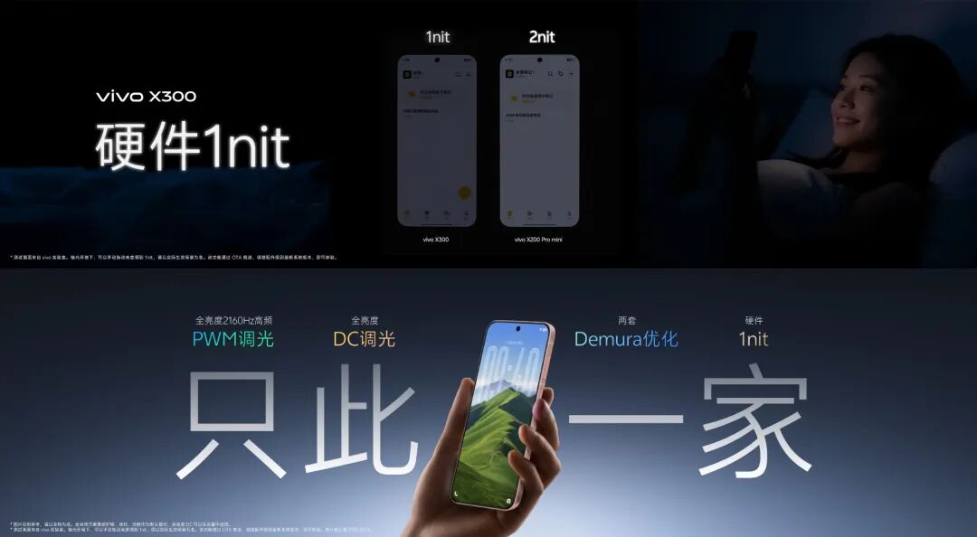 针对两种调光vivo X300全系也单独搭载了Demura调校系统,通过京东方全场景主动画质增强算法彻底解决DC调光常见的低亮度色彩显示不均的难题。vivo X300系列同时搭载京东方硬件1nit超暗光显示,配合暖色调WAD轨迹优化,夜间用屏柔和不刺眼。该款屏幕同时兼具1800-2000nit HBM亮度与3000-4500nit峰值亮度,使vivo X300在户外烈日下的屏幕内容依然清晰可见,实现“昼夜皆舒适”的护眼体验。